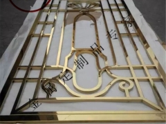 不锈钢屏风外观设计非常简洁大方,线条时尚,不仅设计独特,而工艺非常精湛。经过精加工产生的线条,方格、圆形、花纹等极具个性的几何图案,金属里映射斑斓色彩,既美观又时尚,高端大气上档次。