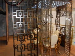 不锈钢系列仿古屏风、工艺屏风、古典屏风,中式屏风,落地屏风、彩色不锈钢激光镂空屏风,装饰墙隔断,不锈钢隔断,屏风价格,等各种来图设计制品,酒柜、吧台、茶几、展示架、专卖店等系列,广泛适用于宾馆、酒店、茶艺馆、高品位办公及家庭的装点装饰。,与传统风格的屏风相比,金属屏风具有经久耐用、造型自主、保洁性能优良的特点,而在装扮现代时尚的家居风格上,金属屏风更是彰显高贵和一流品质,是新一代高档家居装饰的绝佳之选