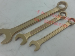 产品介绍:两用扳手,一端与单头呆扳手相同,另一端与梅花扳手相同,两端拧转相同规格的螺栓或螺母.防爆两用扳手,采用铍青铜、铝青铜合金材料适用范围:可广泛应用于石油、石化、油站、油库、采气、化工、军工、电力、矿山、电子、铁路、等潜在火患和爆炸的危险环境中,也是机械制造和机械维修必不可少的专用工具.防爆两用扳手经过加工处理后的铍青铜产品的抗拉强度可以达到35度以上,并且这种材质的产品能防磁,所以这种产品又是既防爆又防磁的产品,特别适合于在要求更高的工作场所使用.