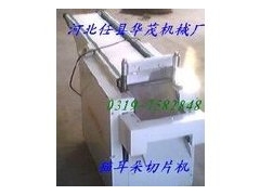 4、接通电源即可切片,切片的厚薄由切刀前方的调架丝来决定,切成的片会直接送到压花刀上,即可压成各种花形,压花刀与输送带是由链条传动的,他们是同步进行的。若不同时进行时,可把压花刀卸下。