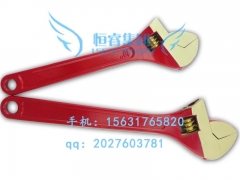 产品特点:防爆活扳手经大型摩擦压力机压延而成,具有强度高、机械性能稳定、使用寿命长等优点,活扳手的受力部位不弯曲、不变形、不裂口。在拧不动时,切不可采用钢管套在活络扳手的手柄上来增加扭力,因为这样极易损伤活络扳唇。