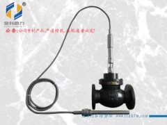 自力式温度调节阀利用液体受热膨胀及液体不可压缩的原理实现自动调节,温度传感器内的液体膨胀是均匀的,其控制作用为比例调节,被控介质温度变化时,传感器内的感温液体体积随着膨胀或收缩,被控介质温度高于设定值时,感温液体膨胀,推动阀芯向下关闭阀门,减少热媒的流量;自力式温度控制阀被控介质的温度低于设定值时,感温液体收缩,复位弹簧推动阀芯开启,增加热媒的流量。