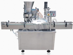 颗粒(粉剂)灌装机,型号GSQ-Z-FJGZQ-1A01,属于专用灌装设备系列。适用于医药、食品、日化等行业的粉剂灌装、颗粒灌装、旋(轧)盖、等动作。颗粒(粉剂)灌装机,不但设计精巧,而且灌装原理上更是作出了革命性的改造。是各厂家的新型替换品种之一。