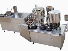 高速口服液灌装机属于专用灌装设备,是灌装,轧盖二合一的高速灌封机,适用于各种10ml-30ml 玻璃瓶的液体灌装和轧盖。机器采用潜入式灌装机构,灌装时,灌装头自动伸入瓶内,液体无溢出;机器在采用高精度计量机构,不锈钢单阀门,灌装计量调整方便;给合式灌装管路及灌装部件,拆卸,消毒十分方便,根据不同的盖子,轧盖力大小可调速,保证瓶盖外观封口美观;采用变频调整系统,能方便地适应各种不同规格的瓶子及不同粘度液体灌装的不同需求。可与真空脱气机、全自动封口机等设备配套使用。