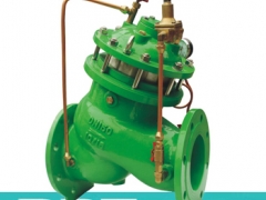 主阀安装在给水管路上,主阀盘是通过液压导管的压力传递,模仿导阀的动作。当下游压力低于设定压力时,导阀开启,隔膜上方的压力水被排放至下游,排放的速度大于进入的补充速度,主阀盘上移使下游压力增大到设定值。当下游压力达到设定值时,导阀关闭,隔膜在压力向下的作用下,使主阀盘下移,从而保持下游压力恒定。