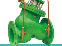 该阀安装在系统管线上或泵出口处。泵开始正常运行中,进口端介质推动大阀瓣上移,同时介质通过导管控制器进入阀盖中腔,使阀门迅速打开;泵停止运动时,出口端介质通过球阀和导管进入阀盖上腔,使驱动装置下移带动大、小阀瓣向下运动,快速或缓慢关闭阀门,防止介质倒流。