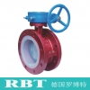 德国罗博特(RBT)品牌:进口衬氟蝶阀采用带有球形密封表面的衬聚四氟乙烯包衬蝶板,配以阀座基部的硅橡胶衬垫调节阀门的密封性能。该阀门操作轻便,严密的密封性能,超长的使用寿命;可作快速切断或调节流量之用。阀体采用分体式,阀轴两端的密封由蝶板与阀座之间的旋转基面加氟橡胶来控制;从而达到产品结构紧凑、外形美观,工艺合理、性能可靠。保证阀轴不与腔内流体介质接触,更换阀轴时非常方便,阀门不需要拆离管道即可完成。