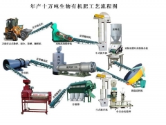 猪粪有机肥搅齿造粒机生产线的相配套的设备有:有机肥翻堆机--半湿物料粉碎机--皮带输送机--有机肥搅拌机--皮带输送机--有机肥新型搅齿造粒机--皮带输送机--有机肥烘干机--皮带输送机--有机肥冷却机--皮带输送机--有机肥滚筒筛分机--皮带输送机--成品自动包装机。