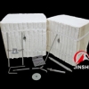 (4) 密度低:比轻质隔热砖炉衬轻75%以上,比轻质浇注料炉衬轻90%到95%。如采用纤维炉衬可大大减轻窑炉的钢结构负荷,延长炉体使用寿命。
