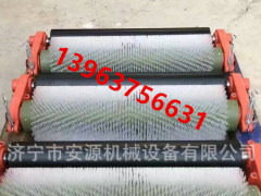 刷,刷尖与带面轻微接触,尼龙刷的旋转方向与回程输送带的运行方向相反,从而将粘在带面上的微粒料刷