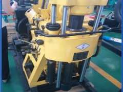 液压钻机 水井钻机 五档变速,最高转速1045r/min,钻进效率高 采用53×59六方主动钻杆,刚性强,传递扭矩大 本机采用国家专利技术的锥度离合器,具有传递扭矩大,操作方便,免维护的突出特点 卷扬机行星齿轮加大模数并加装支撑架,大大提高卷扬机提升及制动能力 立轴箱四组轴承定位,确保回转器有足够刚性应对碎石层,卵石层等复杂地质条件 全国同类机型首家配备流量达160L/min的一体式泥浆泵,具有节省成本,结构紧凑,移动轻便的特点 适应范围 地质普查勘探,道路及高层建筑物基础勘探,以及各种混凝土结构检查孔,江河堤坝,路基灌浆孔钻孔和直接灌浆,民用水井及地温中央空调等 技术参数