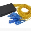 内部由一个PLC光分路器芯片和两端的光纤阵列耦合组成。芯片采用半导体工艺在石英基底上生长制作一层分光波导,芯片有一个输入端和N个输出端波导。然后在芯片两端分别耦合输入输出光纤阵列。