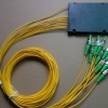 内部由一个PLC光分路器芯片和两端的光纤阵列耦合组成。芯片采用半导体工艺在石英基底上生长制作一层分光波导,芯片有一个输入端和N个输出端波导。然后在芯片两端分别耦合输入输出光纤阵列。