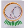 束状尾纤由符合全色谱规范的康宁紧套光纤,外包芳纶纤维加强元件,再包裹具有一定阻燃性能的聚氯乙烯外护套构成,广泛应用于传输线路与终端设备之间的密集连接。