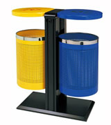 坐地式带盖冲桩孔钢制分类垃圾桶 HC2249 |
