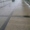 施工前必须确保水泥混凝土板块稳固,其弯沉和相邻高差符合设计要求;水泥混凝土路面的各种缝隙(包括伸缩缝、施工缝、板块断裂缝等),均应先应用柔性材料进行填密处理,填缝高度与路面持平;采用适当材料对缺损部位进行修补以确保表面平整、承载能力足够;水泥混凝土板面要求平整、干净、干燥,基面潮湿以及雨天、雪天不得施工。施工过程中必须用沙包或压辊将防裂贴压密,以防在摊铺沥青混凝土前雨水进入防裂贴粘合面。如果预计摊铺沥青混凝土之前可能要下大雨,应在防裂贴两侧用密封胶加以密封或者用煤气喷火器逐渐喷烤防裂贴边缘沥青后压密。摊铺沥青混凝土时车辆不得在防裂贴上就地急速碾转掉头。
