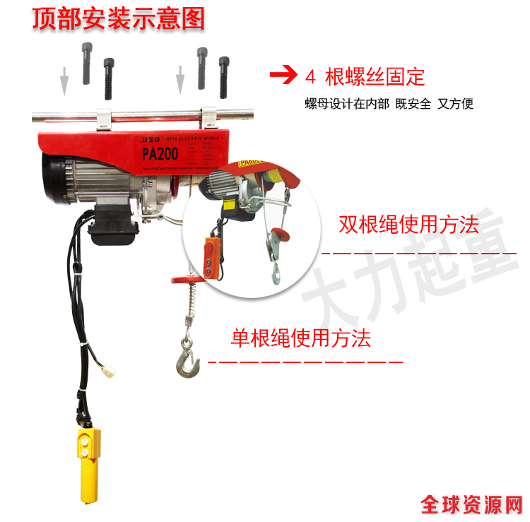1、定子、转子要比市场上普通微型电动葫芦加长一公分,并且使用更多铜线,这样做的目的是为了电机温度慢,功率更大;