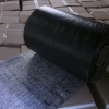 成品为黑色板状,拉力为8KN、15KN(如有特殊要求可定做),宽度为19、32、48、98厘米,长度为25米。克重2000-3000千克/平方米(是种非常沉的建材,因而运输费用相对高一些),厚度1.0-3.0毫米。颜色一面为亮黑色,另一面为白色(玻纤布、机织布)或黑色(编织布)。