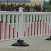 底座为高分子复合底座,钢板镀锌混泥土底座以上护栏均为钢管材质,表面工艺采用先热镀锌后纯聚脂彩色粉末喷涂。