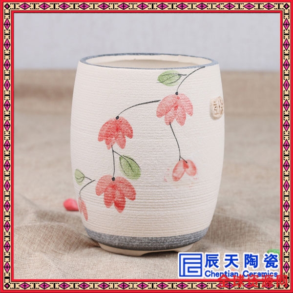 陶瓷花钵先由瓷泥拉制成坯胎,再外涂彩釉或人工手绘上花纹图案,最后入窑烧制而成。工艺精致,洁净素雅,造型美观。钵身图案经上千度高温窑烧制而成,具有不变色、不褪色、不易受腐蚀等特点,可长久使用。陶瓷花钵可用作瓦盆的套盆,用来装点室内或展览花卉。本公司生产的陶瓷花钵经过淘泥、摞泥、拉坯、修坯、绘画、上釉、烧窑、成瓷等十几道手工工序才能制做完成,具有很高的艺术欣赏价值,和鲜花搭配能够营造出非常优美的家居环境,让人时刻处于温馨和舒适之中。