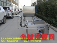 双头卧式搅拌辣椒酱灌装机/双头酱料灌装机--星火合肥灌装机