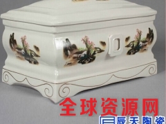殡仪馆用品陶瓷骨灰盒订制价格景德镇辰天陶瓷有限公司:作为一家植根与千年瓷都景德镇的陶瓷企业,已经发展成为一家集产品设计、开发、制造、包装等整套工艺流程为一体,具一定规模的陶瓷企业。欢迎广大客户来电咨询!同时公司同时提供各类陶瓷工艺品、陶瓷纪念品、陶瓷礼品的设计加工和来样定做。 由于陶瓷材料来源丰富、廉价、艺术造型容易、易于工业化生产,成本低且产品显得华贵,既适合陈列于殡仪馆和家庭,也适合土葬的民俗,是很有推广意义的一种骨灰盒。它解决了现有的骨灰盒盒体内容易受潮的问题。不易使湿气从盒体或从盒体和盒盖的连接处渗入盒体内,能保证骨灰盒内长时间的干燥。