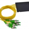 内部由一个PLC光分路器芯片和两端的光纤阵列耦合组成。芯片采用半导体工艺在石英基底上生长制作一层分光波导,芯片有一个输入端和N个输出端波导。然后在芯片两端分别耦合输入输出光纤阵列。