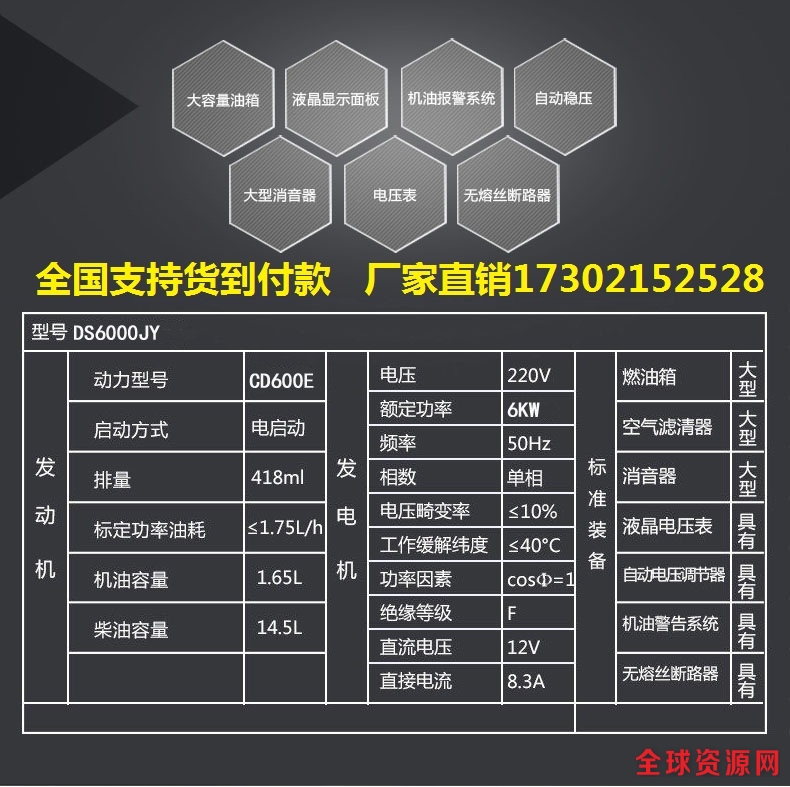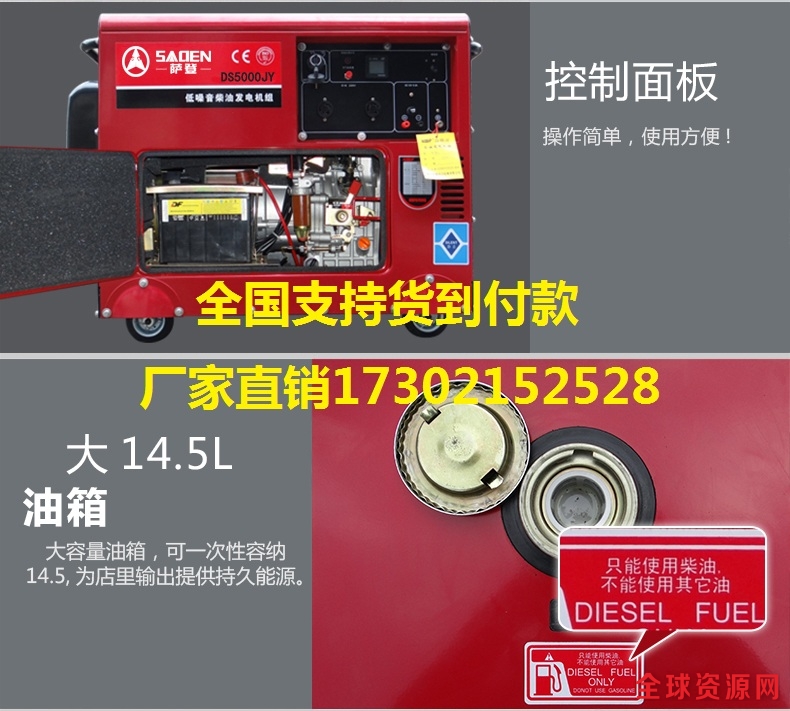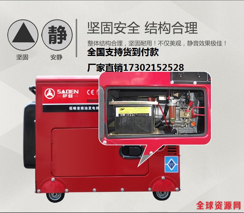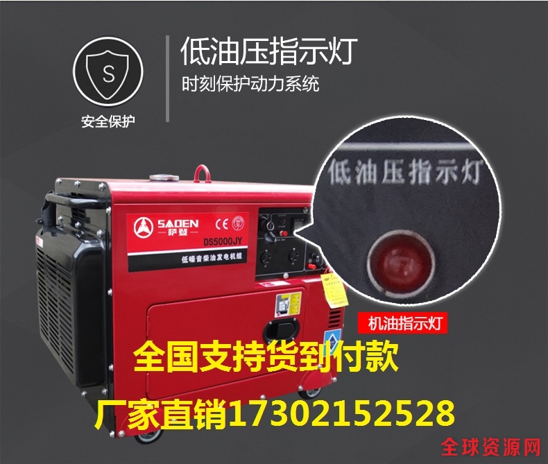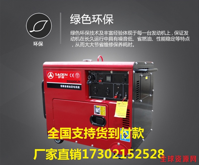 6KW静音柴油发电机小型家用220v带电梯货梯供电萨登DS6000JY交流发电机是基于电磁感应的基本理论而工作的,结构上包括定子(电枢)、转子、前后端盖、电刷及传动带轮等部分,将机械能转变成电能。三相定子绕组在结构、匝数及线圈个数上完全相等,排列上分别相差120度的电角度,转子与传动带轮同轴安装,产生旋转的磁场,使定子绕组切合磁力线,从而产生三相感应电动势,这三个电动势的频率、幅值相等,相位互差120度。