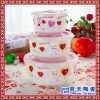 陶瓷保鲜碗由高温1300℃烧成。瓷质细腻通透,器型美观典雅,彩面润泽光亮,花面多姿多彩,是家庭、办公室理想健康绿色陶瓷。