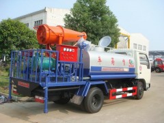 风机安装可360°调整的直流喷嘴两只,冲洗宽度可达到25米以上,调整角度后,还可对道路面旁的高大树木进行冲洗;装有两只可喷淋后洒装置,主要对场道路进行保洁和压尘,洒水宽度可达18米以上;高射枪的射程可达30米以上,可调节成雾状或柱状进行喷洒。喷药车也有洒水车功能可进行城市环卫,绿化之用。