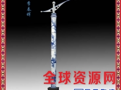 景德镇陶瓷灯柱规格有方形圆形、高度1米到3.5米、图案工艺手绘贴花、价格电议。