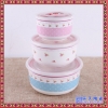 骨瓷保鲜碗采用釉上贴花工艺,色彩鲜艳,款式新颖,品质高档,是对中国特色餐具的新体验,新潮时尚,手感舒适,形状轻巧,在餐桌上尽显陶瓷美感,给您的厨房增添无穷乐趣。