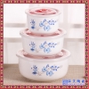 骨瓷保鲜碗采用釉上贴花工艺,色彩鲜艳,款式新颖,品质高档,是对中国特色餐具的新体验,新潮时尚,手感舒适,形状轻巧,在餐桌上尽显陶瓷美感,给您的厨房增添无穷乐趣。