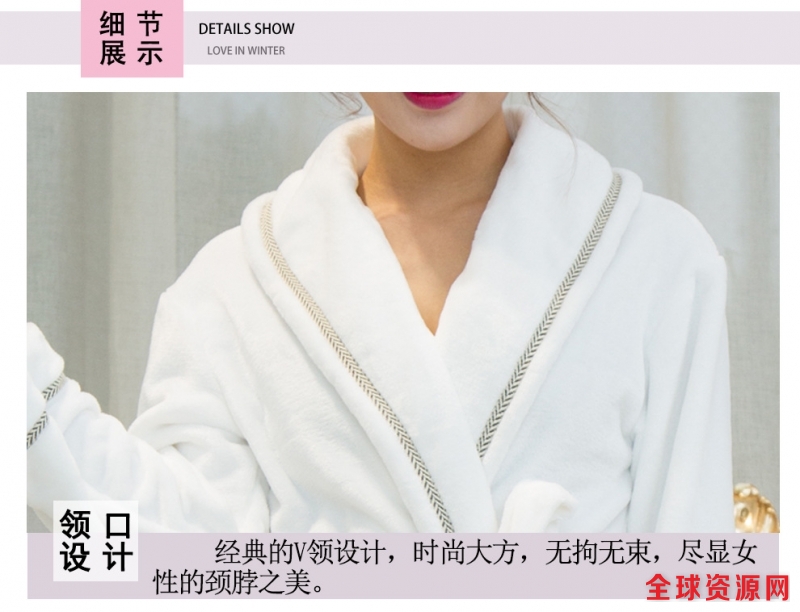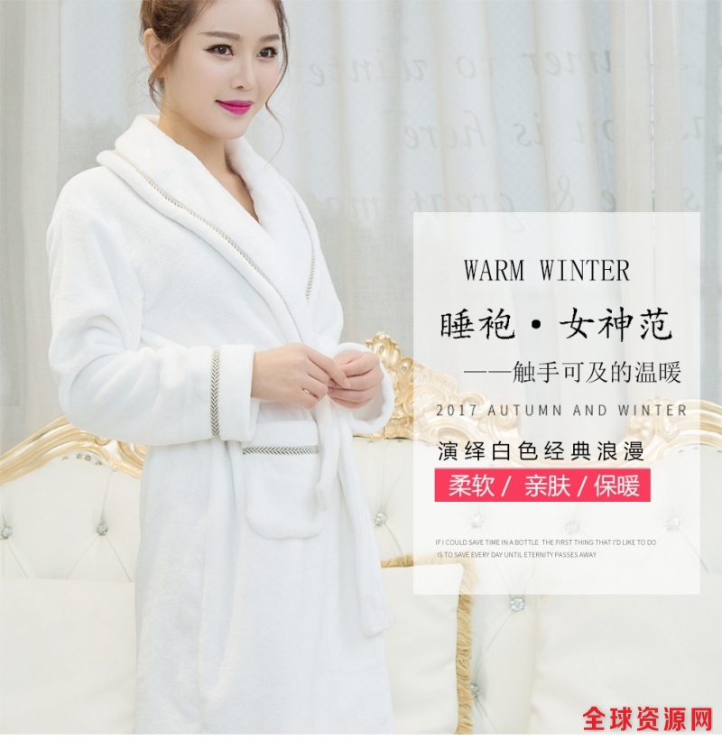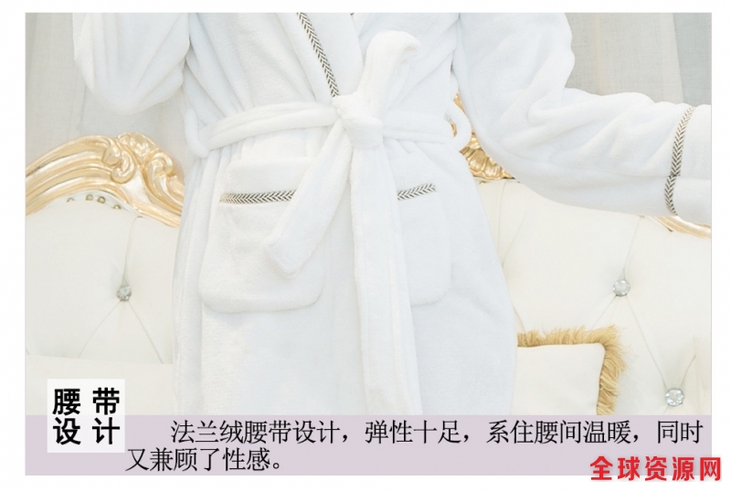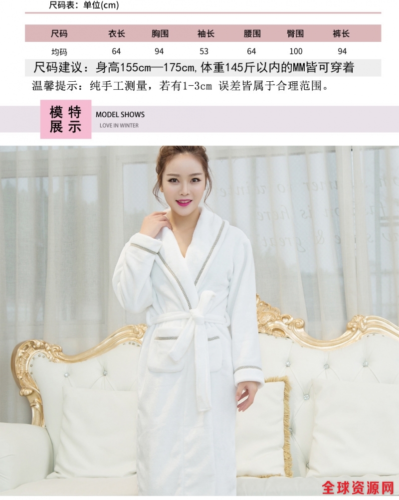 坡脚马 睡衣男女情侣冬季新品法兰绒长袖睡袍家居服浴袍 白色