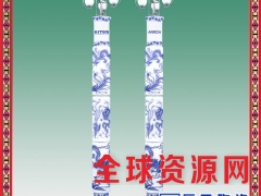 景德镇陶瓷灯柱规格有方形圆形、高度1米到3.5米、图案工艺手绘贴花、价格电议。
