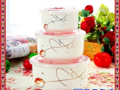 陶瓷保鲜碗独特圆形设计,人性化上盖设计,即方便开启,有便于密封,保鲜。气密保鲜,方便携带。确保各种生熟食物不会窜味。任意组合,方便外出携带。此类陶瓷保鲜碗是可用于冰箱也可用于微波炉的