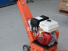 与大型铣刨机的反切削工作原理不同,小型铣刨机是依靠铣鼓的正向高速旋转,从而甩动铣鼓刀轴上的几组硬质钨钢合金刀片高速敲击地面,利用合金刀片上的钨钢合金齿来破碎与磨削地面材料,从而达到表面铣刨处理效果,适用于公路与桥梁道面养护,地坪行业表面打毛等作业。