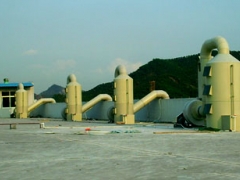 废气通过引风机的作用进入高效填料塔,在填料塔的上端喷头喷出吸收液均匀分布在填料上,废气与吸收液在填料表面上充分接触,由于填料的机械强度大、耐腐蚀、空隙率高、表面大的特点,废气与吸收液在填料表面有较多的接触面积和反应时间,废气中的易溶于水的物质几乎全被吸附在吸收液上,废气中HCL、CL2、NOX、NH3等物质与吸收液反应,生成无害的盐类和水,从而达到净化废气的目的。净化后的气体会饱含水份,经过塔顶的除雾装置去除水份后直接排放大气中。吸收液循环使用,吸收液根据污染物性质配制。
