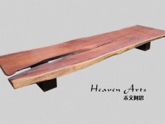 在红木桌子中融入时尚元素,以艺术的手法呈现高山流水的静谧。平整的桌面上一道裂缝,将人拉入无边的想象中,是张扬了个性的特立独行。乳白色边缘自然随性的蜿蜒,包裹着棕红心材,每一丝纹理都那么自然。