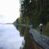湖岸整治工程多用平顺护岸必要时也可采用短丁坝护岸。平顺护岸包括挡墙和护坡两种形式。挡墙结构一般采用高度1m的网箱分层摆放,相互间错缝。流速大的河道应在最下部设置网垫,网垫伸出的长度根据网箱高度和最大冲刷深度来确定。