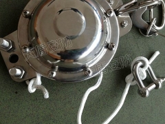 静水压力释放器是用于系附于船舶的自由漂浮装置(如救生筏,卫星应急无线电示位标等)在船舶沉没或其他需释放时能通过自动和人工方式释放的装置。