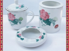 精品三件套办公文具,优质骨瓷;经久耐用、传统花绘、不掉色;具有一定艺术欣赏价值。景德镇市辰天陶瓷有限公司专业定做陶瓷办公三件套,选用正宗骨瓷,健康环保。瓷质细腻、釉面洁白、色泽亮丽。专业设计的陶瓷办公三件套外形细致、优雅大方、做工精细。陶瓷办公三件套都是经过千年窑火烧制,不褪色,正宗景德镇制瓷,健康瓷、放心用。陶瓷办公三件套中的茶杯特有的光滑细腻,茶的清香环绕,慢慢品味,享受独有的瓷之韵,高超的制作工艺,幽静雅致。
