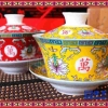 陶瓷制的盖碗得到大家广泛的使用,不仅仅是因为其好看,而且陶瓷材料的盖碗密度很高,而且碗内壁都是为纯白色的,在使用陶瓷冲泡普洱茶的时候最真实的反应出茶叶的身的滋味,陶瓷盖碗不会对茶叶的味道有影响,而且我们喝茶的时候也可以看到茶叶叶底的情况,所以我们在喝好茶的时候都喜欢使用陶瓷盖碗来冲泡,不仅仅是因为好看。