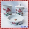 精品三件套办公文具,优质骨瓷;经久耐用、传统花绘、不掉色;具有一定艺术欣赏价值。景德镇市辰天陶瓷有限公司专业定做陶瓷办公三件套,选用正宗骨瓷,健康环保。瓷质细腻、釉面洁白、色泽亮丽。专业设计的陶瓷办公三件套外形细致、优雅大方、做工精细。陶瓷办公三件套都是经过千年窑火烧制,不褪色,正宗景德镇制瓷,健康瓷、放心用。陶瓷办公三件套中的茶杯特有的光滑细腻,茶的清香环绕,慢慢品味,享受独有的瓷之韵,高超的制作工艺,幽静雅致。