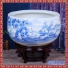 陶瓷聚宝盆鱼缸景德镇现代青花山水毋庸置疑也受到了国画山水的深远影响,现代的国画山水题材受到几个世纪的变革与进化,慢慢的除去了按部就班创作达到了一种巅峰。