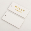 服装吊牌卡制作工艺多样化,现在流行的服装吊牌多为磨沙卡,凸码、烫金、条形码等工艺,尽显出该品牌服装的高雅与品位。
