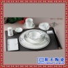中餐:骨碟、面巾碟、饭碗、汤碗、面碗、汤勺、调羹、勺托、筷架、筷子、水杯、红酒杯、白酒杯、啤酒杯、温酒器、茶杯、茶碟、各式热菜盘、鱼盘、汤盘等。