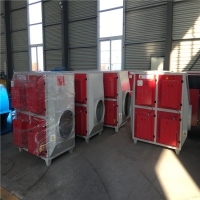UV光氧催化氧化设备光解分解废气分子:首先废气经过253.7纳米波段光切割、断链、燃烧、裂解废气分子链,改变分子结构,取185纳米波段光对废气分子进行催化氧化,使破坏后的分子或中子、原子以O3进行结合,使有机或无机高分子恶臭化合物分子链,在催化氧化过程中,转变成低分子化合物CO2H2O等,再根据不同的废气成分配置27种以上相对应的惰性催化剂,催化剂采用蜂窝状金属网孔作为载体,全方位与光源接触,惰性催化剂在338纳米光源以下发生催化反应,放大10-30倍光源效果,使其与废气进行充分反应,缩短废气与光源接触时间,从而提高废气净化效率。通过UV光解后的废气净化效果超过国家GB14554-93《恶臭污染物排放标准》表2恶臭污染物排放标准值,接着经过光解处理后的废气进入活性炭吸附箱。