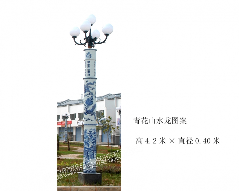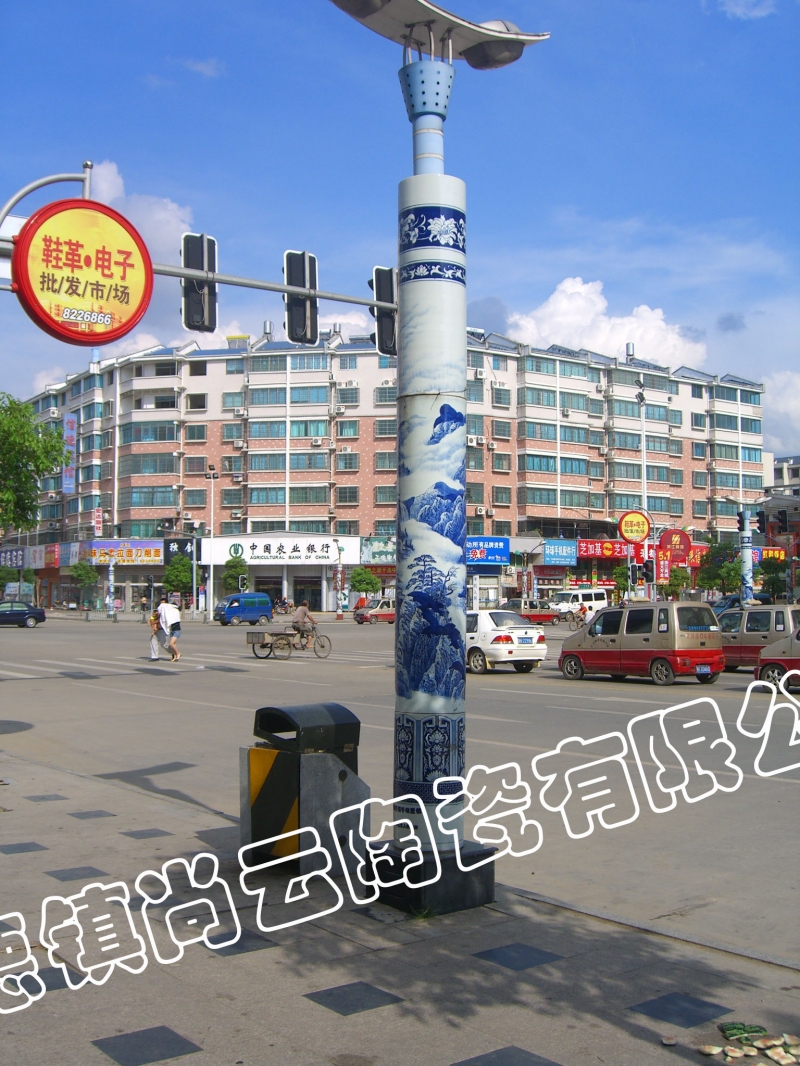 景德镇陶瓷灯柱:精美的陶瓷灯柱,在城市的街道旁形成一道靓丽的风景,显得是那样的独特和雅致!我司生产的陶瓷景观灯柱高达1-6米,新颖别致的造型, 独特的艺术风格, 令人赏心悦目。陶瓷景观灯柱 :酒店、别墅、商业中心, 街心广场,火车站, 机场, 码头,街道两旁及任何公共场所