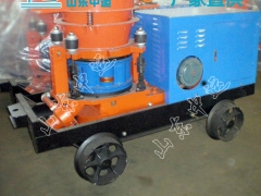 湿式喷浆机是目前国内外降低粉尘、减少回弹、节约材料等综合性能较好的锚喷支护机具。所谓湿喷,其基本原理是将加水搅拌好的成品混凝土加入湿式喷浆机,输送至喷嘴处,经掺加速凝剂后形成料束喷至施工面。zy16
